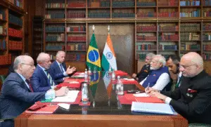प्रधानमंत्री मोदी ब्राज़ील की राजकीय यात्रा पर हैं, जहाँ वे ब्राज़ील के राष्ट्रपति लुईज़ इनासियो लूला दा सिल्वा के साथ द्विपक्षीय वार्ता करेंगे, ताकि व्यापार, रक्षा, ऊर्जा, अंतरिक्ष, प्रौद्योगिकी, कृषि, स्वास्थ्य और लोगों के बीच संपर्क सहित आपसी हितों के क्षेत्रों में दोनों देशों के बीच रणनीतिक साझेदारी का विस्तार किया जा सके। उन्होंने इस बात पर चर्चा की कि लोगों को कैसे समृद्ध रखा जाए और वे क्या लाभ प्रदान कर सकते हैं।
